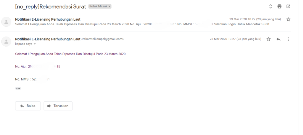 Setelah semua selelai Anda dapat melihat status penjuan anda ditolak atau disetujui anda dapat melihat di notif email atau notif di account web anda seperti diatas. Jika masih ada hal yang belum jelas mengenai cara daftar MMSI dan tidak memiliki waktu Anda dapat menghubungi kami, dengan senang hati tim kami akan membantu Anda atau jika anda tidak memiliki waktu anda dapat menghubungi https://mmsikapal.com/ . Sampai disini tutorial cara daftar mmsi baik untuk kapal perorangan maupun kapal atas nama perusahaan.